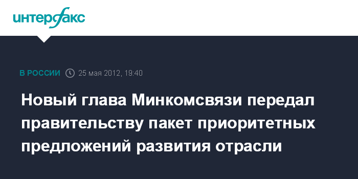 Казань. 25 мая. INTERFAX.RU - Министерство связи и массовых коммуникаций РФ подготовило пакет приоритетных предложений развития отрасли и деятельности ведомства на период июнь-декабрь 2012 года, сообщил глава Минкомсвязи РФ Николай Никифоров, на этой неделе перешедший с должности министра информационных технологий и связи Татарстана на пост главы федерального министерства.
