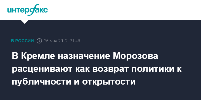 В Кремле назначение Морозова расценивают как возврат политики к публичности и открытости