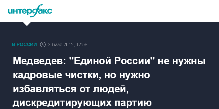 Медведев: "Единой России" не нужны кадровые чистки, но нужно избавляться от людей, дискредитирующих партию
