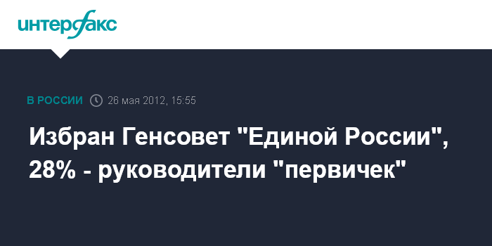 Избран Генсовет "Единой России", 28% - руководители "первичек"