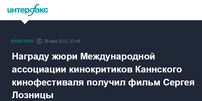 Награду жюри Международной ассоциации кинокритиков Каннского кинофестиваля получил фильм Сергея Лозницы