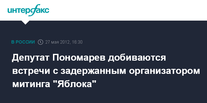 Депутат Пономарев добиваются встречи с задержанным организатором митинга "Яблока"