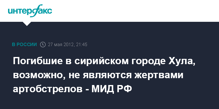 Погибшие в сирийском городе Хула, возможно, не являются жертвами артобстрелов - МИД РФ