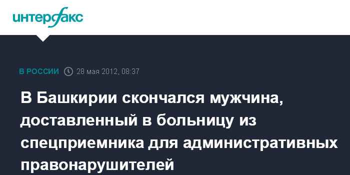 Уфа. 28 мая. INTERFAX.RU - В Стерлитамаке (Башкирия) скончался арестованный за неуплату штрафа 40-летний мужчина, доставленный в больницу из спецприемника для административно-арестованных, сообщили агентству "Интерфакс-Поволжье" в пресс-службе республиканского МВД.