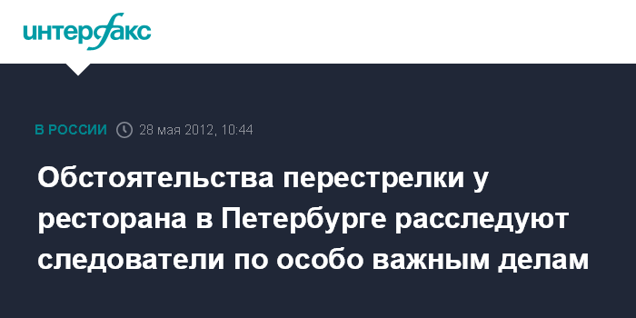 Санкт-Петербург. 28 мая. INTERFAX.RU - Главное следственное управление СКР по Петербургу приняло к производству уголовное дело, возбужденное по факту перестрелки у ресторана "Камелот", в результате которой погибли два человека.