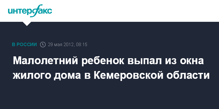 Кемерово. 29 мая. INTERFAX.RU - В Междуреченске (Кемеровская область) маленькая девочка выпала из окна пятого этажа, она госпитализирована, сообщил во вторник агентству "Интерфакс-Сибирь" источник в правоохранительных органах.