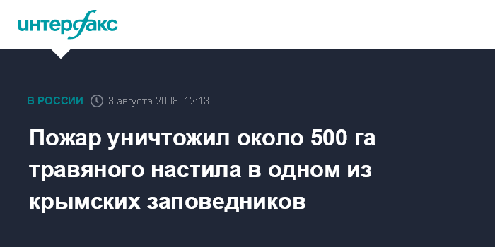 Москва. 3 августа. INTERFAX.RU - В Крыму огонь уничтожил около 500 га травяного настила на территории Опукского природно-охранного заповедника (общая площадь 1 тыс.га).