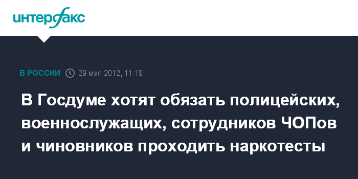 В Госдуме хотят обязать полицейских, военнослужащих, сотрудников ЧОПов и чиновников проходить наркотесты