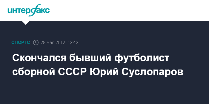 Москва. 29 мая. INTERFAX.RU - На 54-м году жизни 28 мая скончался известный в прошлом советский футболист, мастер спорта международного класса Юрий Суслопаров, сообщает официальный сайт Российского футбольного союза.