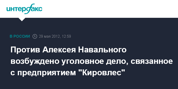 Против Алексея Навального возбуждено уголовное дело, связанное с предприятием "Кировлес"