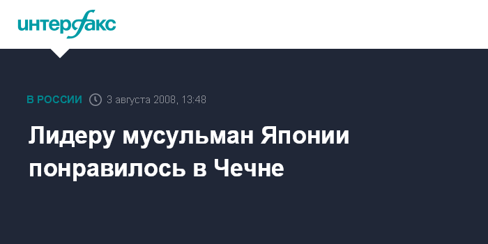 Москва. 3 августа. INTERFAX.RU - Духовный лидер мусульман Японии Ниматуллой Ибрахим приехал в Чечню, где встретился с президентом республики Рамзаном Кадыровым.