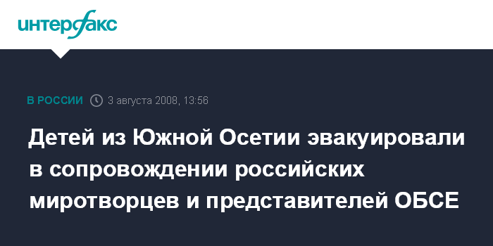 Москва. 3 августа. INTERFAX.RU - Военные наблюдатели Смешанных сил по поддержанию мира (ССПМ) в зоне грузино-осетинского конфликта и представители миссии ОБСЕ организовали сопровождение автотранспорта, который осуществлял вывоз детей из населенных пунктов Южной Осетии.