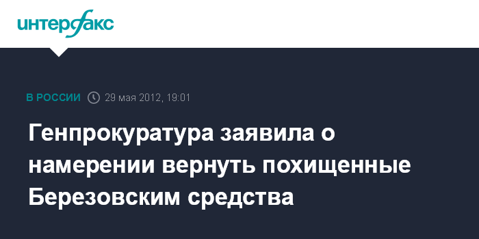 Генпрокуратура заявила о намерении вернуть похищенные Березовским средства
