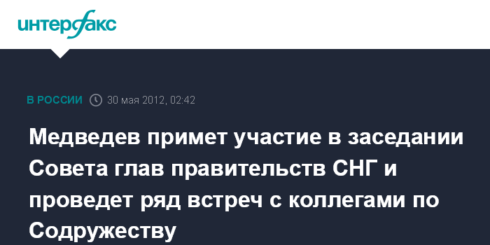 Медведев примет участие в заседании Совета глав правительств СНГ и проведет ряд встреч с коллегами по Содружеству