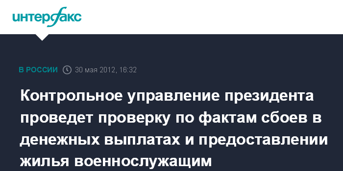Контрольное управление президента проведет проверку по фактам сбоев в денежных выплатах и предоставлении жилья военнослужащим