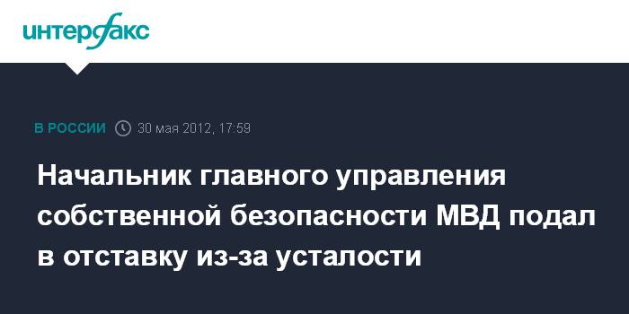 Начальник главного управления собственной безопасности МВД подал в отставку из-за усталости