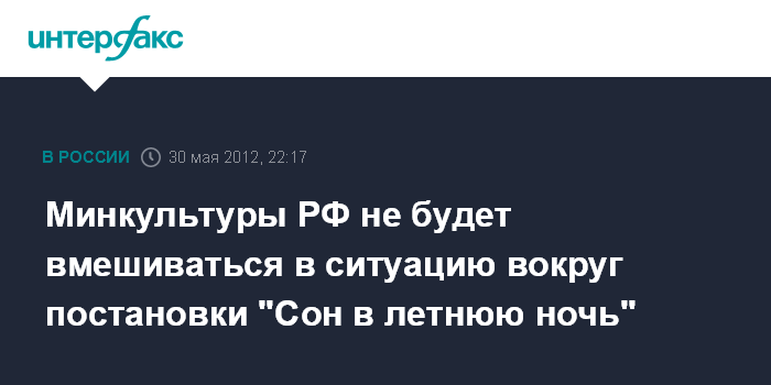Минкультуры РФ не будет вмешиваться в ситуацию вокруг постановки "Сон в летнюю ночь"