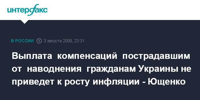 Выплата компенсаций пострадавшим от наводнения гражданам Украины не приведет к росту инфляции - Ющенко