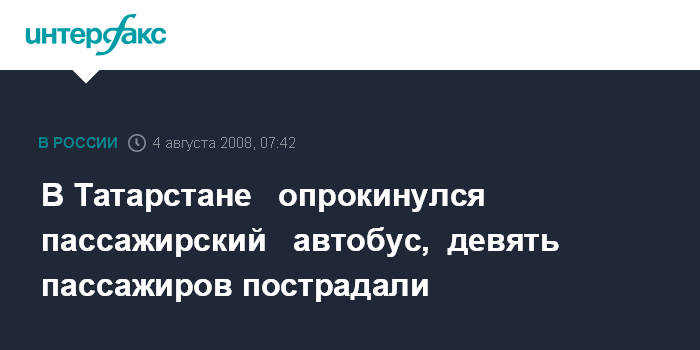 В Татарстане опрокинулся пассажирский автобус, девять пассажиров пострадали
