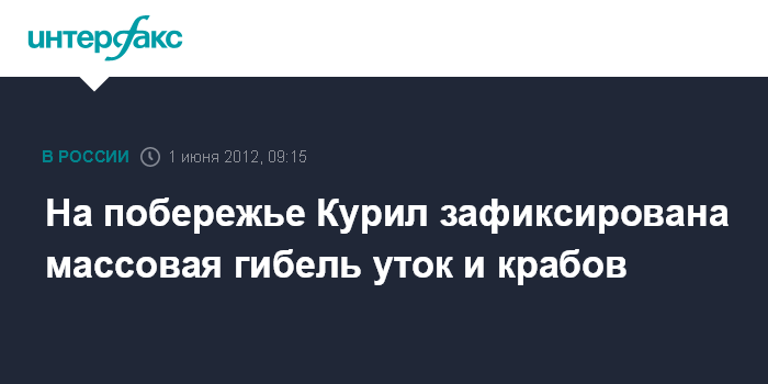 Южно-Сахалинск. 1 июня. INTERFAX.RU - Массовый выброс мертвых крабов и морских уток зафиксирован на океаническом побережье острова Итуруп (средние Курилы - ИФ).