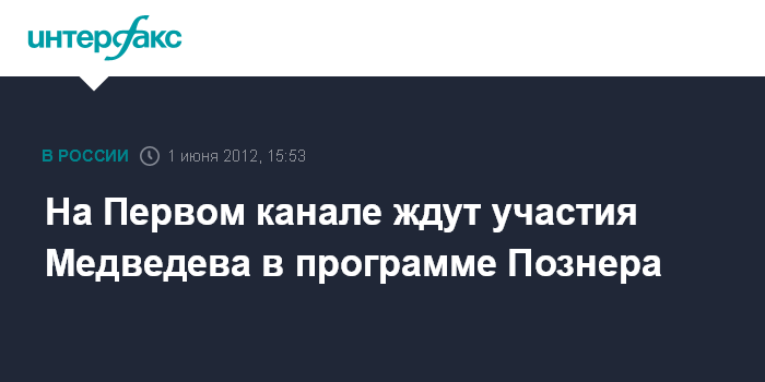 В свою очередь Познер подтвердил "Интерфаксу" эту информацию. "Как вы помните, в открытом эфире я пригласил Дмитрия Медведева принять участие в моей передаче и получил положительный ответ", - отметил он.