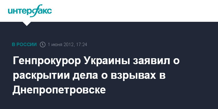Киев. 1 июня. INTERFAX.RU - Генеральный прокурор Украины Виктор Пшонка заявил о раскрытии дела об апрельских взрывах в Днепропетровске раскрыто.