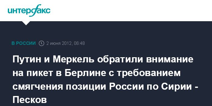 Путин и Меркель обратили внимание на пикет в Берлине с требованием смягчения позиции России по Сирии - Песков