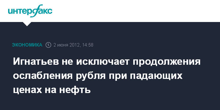 Игнатьев не исключает продолжения ослабления рубля при падающих ценах на нефть