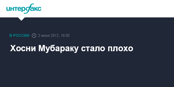 Каир. 2 июня. INTERFAX.RU - Бывшему президенту Египта 84-летнему Хосни Мубараку стало плохо сразу после прибытия в каирскую тюрьму "Тора", сообщило местное телевидение. Бывший президент Египта ранее в субботу был приговорен судом к пожизненному заключению за соучастие в убийствах демонстрантов в ходе гражданских волнений в прошлом году, которые привели к его отставке. По имеющимся данным, Х.Мубарак отказался покинуть вертолет, который его доставил в госпиталь тюрьмы, где он должен отбывать пожизненное заключение.
