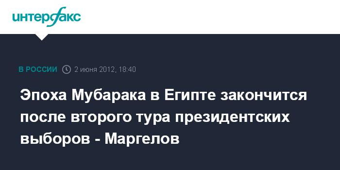 Эпоха Мубарака в Египте закончится после второго тура президентских выборов - Маргелов