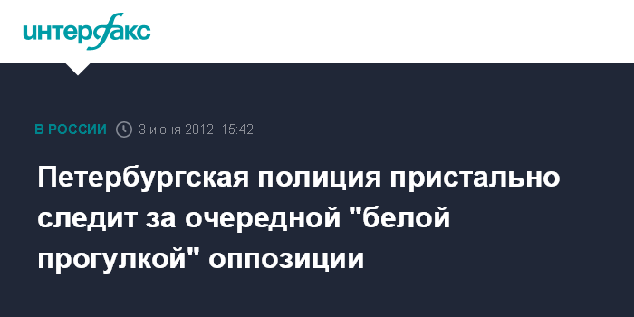 Санкт-Петербург. 3 июня. INTERFAX.RU - Оппозиционеры, не согласные с итогами президентских выборов в РФ, в очередной раз решили провести в Петербурге "белую прогулку", сообщила "Интерфаксу" в воскресенье одна из лидеров оппозиции Ольга Курносова. "Как и обычно, мы стартуем с Исаакиевской площади, мы будем нести в руках белые воздушные шары, украсим себя белыми ленточками (символ протеста - ИФ). Наш маршрут традиционен - от Исаакиевской до площади Искусств", - сказала О.Курносова.