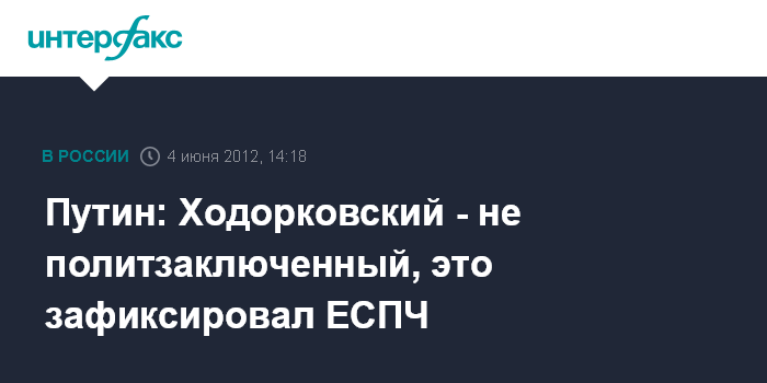 "Что касается так называемых "политических" заключенных. Где бы я ни бывал, поднимается один вопрос: прежде всего о судьбе господина Ходорковского. Как известно, Европейский суд по правам человека зафиксировал, что в уголовном деле и в приговоре в отношении господина Ходорковского нет политических мотивов", - заявил В.Путин журналистам в понедельник после саммита РФ-ЕС.