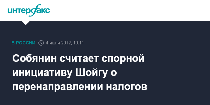 Собянин считает спорной инициативу Шойгу о перенаправлении налогов