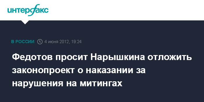 Федотов просит Нарышкина отложить законопроект о наказании за нарушения на митингах