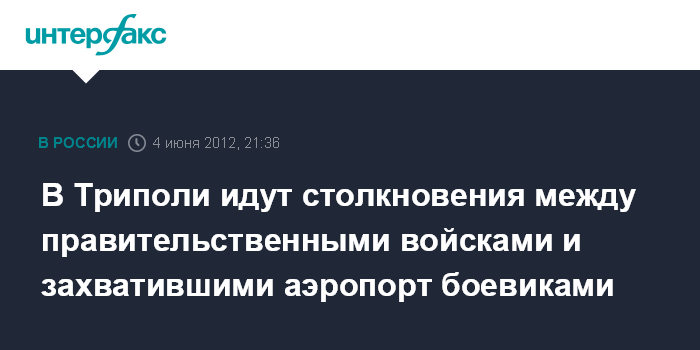 Дубай. 4 июня. INTERFAX.RU - В Ливии происходят столкновения между правительственными войсками и вооруженными людьми, захватившими международный аэропорт Триполи, сообщает в понедельник межарабский телеканал "Аль-Джазира".