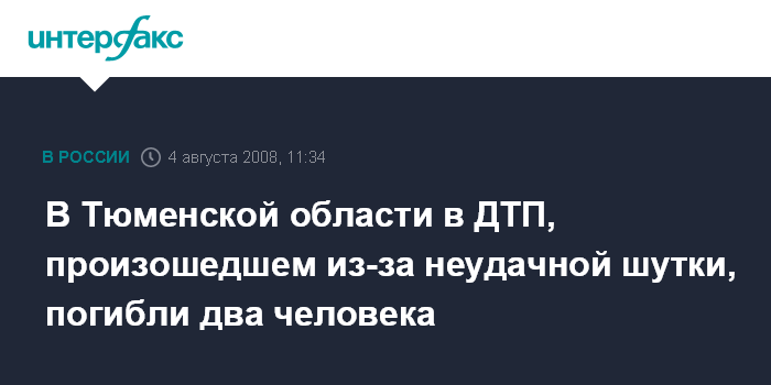 Москва. 4 августа. INTERFAX.RU - В Тюменской области перевернулся автомобиль с пьяной компанией. В результате два человека погибли, еще двое пострадали.