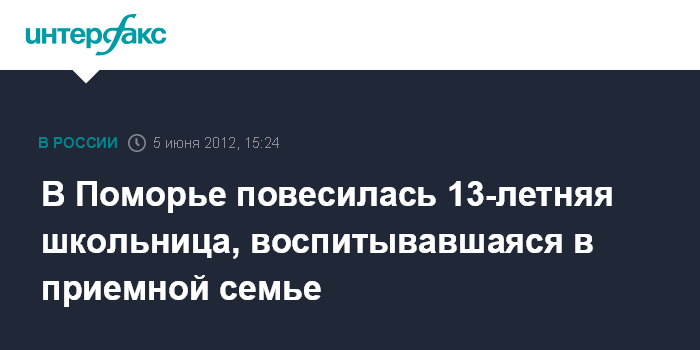 В Поморье повесилась 13-летняя школьница, воспитывавшаяся в приемной семье