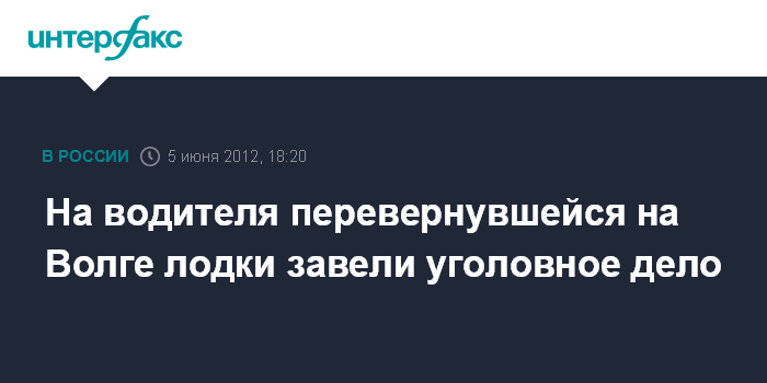 Саратов. 5 июня. INTERFAX.RU - Следственные органы Саратовской области возбудили уголовное дело в отношении судоводителя моторной лодки, виновного, по мнению следствия, в том, что на Волге перевернулось судно с восемью пассажирами, которым он управлял в пьяном виде.