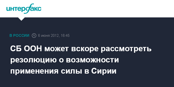 Вашингтон. 6 июня. INTERFAX.RU - Международное сообщество вскоре может рассмотреть в СБ ООН резолюцию, в которой будет содержаться санкция на применение силы в Сирии, заявил в среду министр финансов США Тимоти Гайтнер.