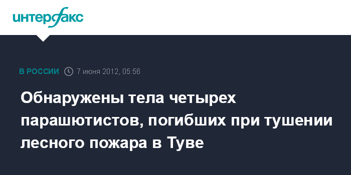 Ранее со ссылкой на Рослесхоз сообщалось о гибели в Туве девяти парашютистов-пожарных.