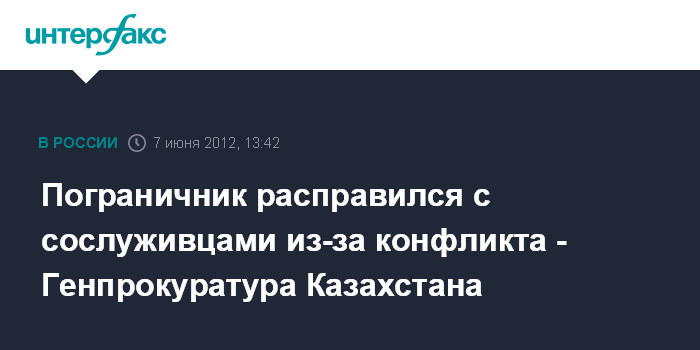 Астана. 7 июня. INTERFAX.RU - Причиной расправы пограничника Владислава Челаха, несшего службу на посту "Арканкерген" в Алматинской области Казахстана, со своими сослуживцами стал конфликт.