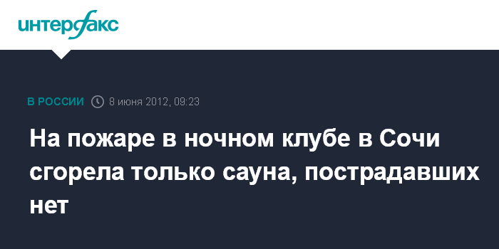 Сочи. 8 июня. INTERFAX.RU - Очаг пожара в сочинском ночном клубе "ПЛОТформа", произошедшего в четверг вечером, находился в сауне, сообщил агентству "Интерфакс-Юг" представитель городского отделения МЧС РФ в пятницу.
