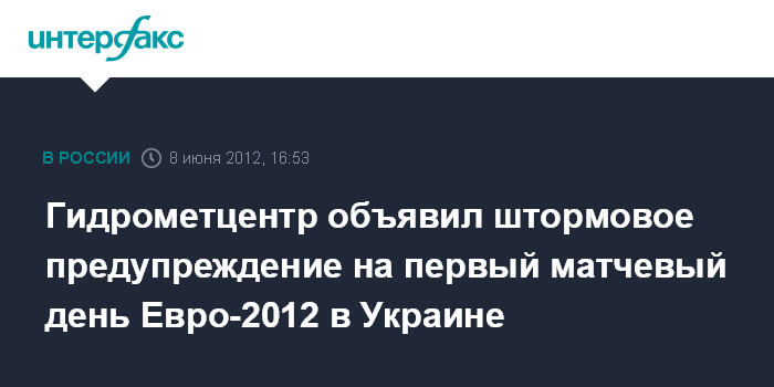 Гидрометцентр объявил штормовое предупреждение на первый матчевый день Евро-2012 в Украине