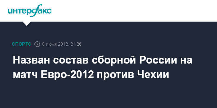 Москва. 8 июня. INTERFAX.RU - Главный тренер сборной России по футболу Дик Адвокат огласил состав команды, которая в пятницу сыграет против Чехии в первом туре группового этапа чемпионата Европы.