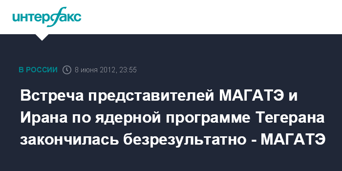 Вена. 9 июня. INTERFAX.RU - МАГАТЭ и Иран в ходе встреч в Вене не достигли никакого прогресса по соглашению, которое, в частности, обеспечило бы контроль за иранской ядерной программой и позволило бы агентству получить доступ на ядерный объект в Парчине, сообщил в пятницу глава группы инспекторов МАГАТЭ Херман Накертс.