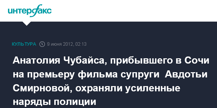 Анатолия Чубайса, прибывшего в Сочи на премьеру фильма супруги Авдотьи Смирновой, охраняли усиленные наряды полиции