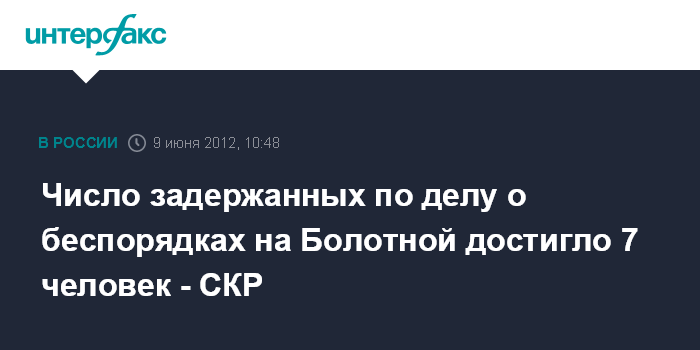 Таким образом, по словам представителя СК РФ, к настоящему моменту задержаны уже семь человек в рамках уголовного дела о массовых беспорядках 6 мая на Болотной площади.