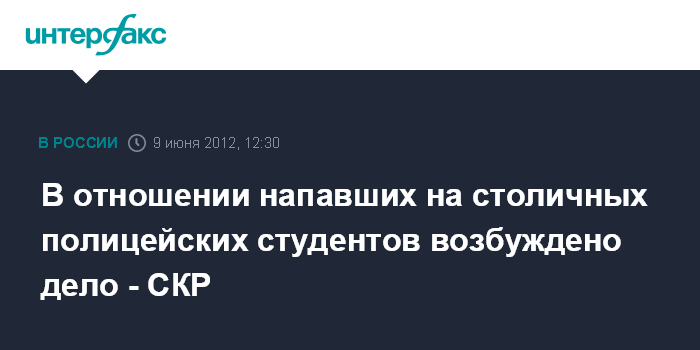 Москва. 9 июня. INTERFAX.RU - Столичные органы СК РФ возбудили уголовное дело в отношении студентов, оказавших сопротивление полиции при задержании подозреваемых в нападении на футбольного болельщика возле ТЦ "Европейский", сообщили в СК РФ.