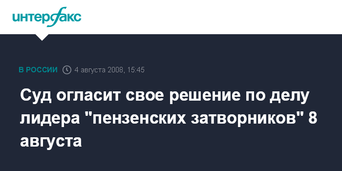 Суд огласит свое решение по делу лидера "пензенских затворников" 8 августа