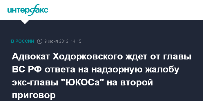 Адвокат Ходорковского ждет от главы ВС РФ ответа на надзорную жалобу экс-главы "ЮКОСа" на второй приговор